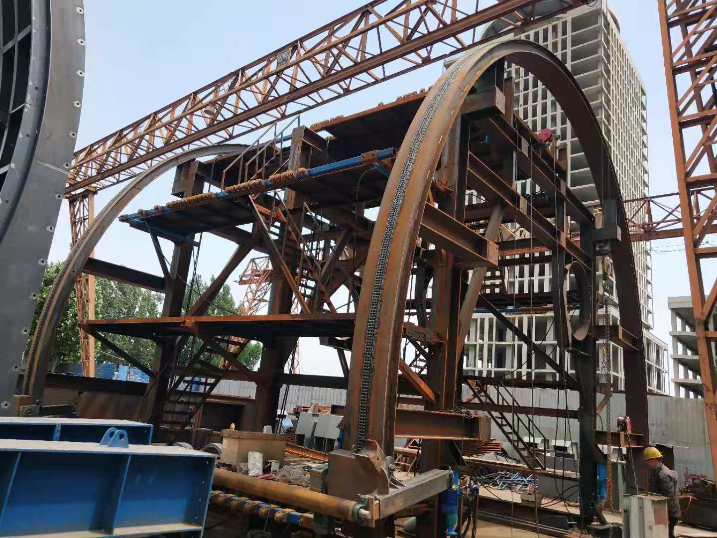 防水板鋼筋掛布臺車,組拼試車順利驗(yàn)收,該臺車掛布激光定位、鋼筋定位綁扎、機(jī)電液一體自動控制、配備宇航e管家智能系統(tǒng)等。施工可視化 數(shù)據(jù)化、機(jī)械化。高空作業(yè)安全可靠、效率高。